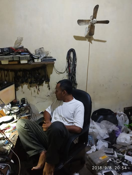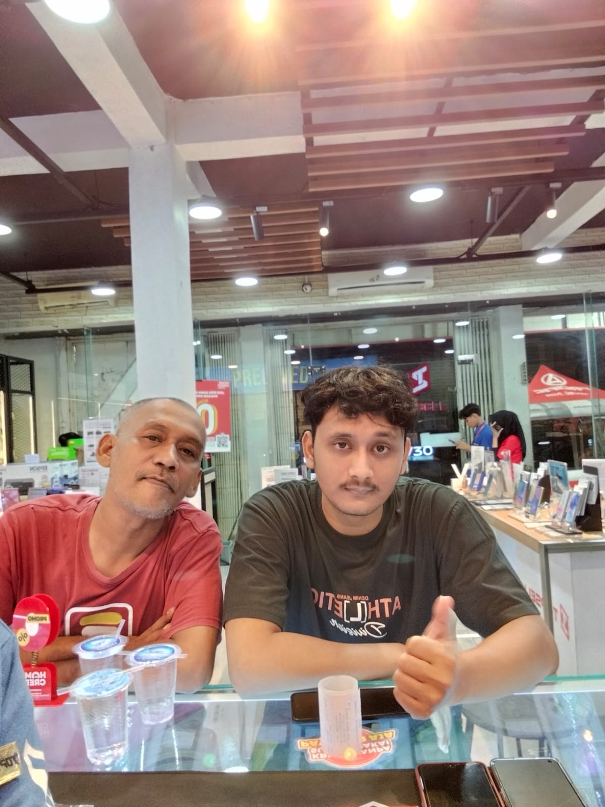 Bersama anak lanang saya Akbar M. Sadat ngonten di Counter HP.
